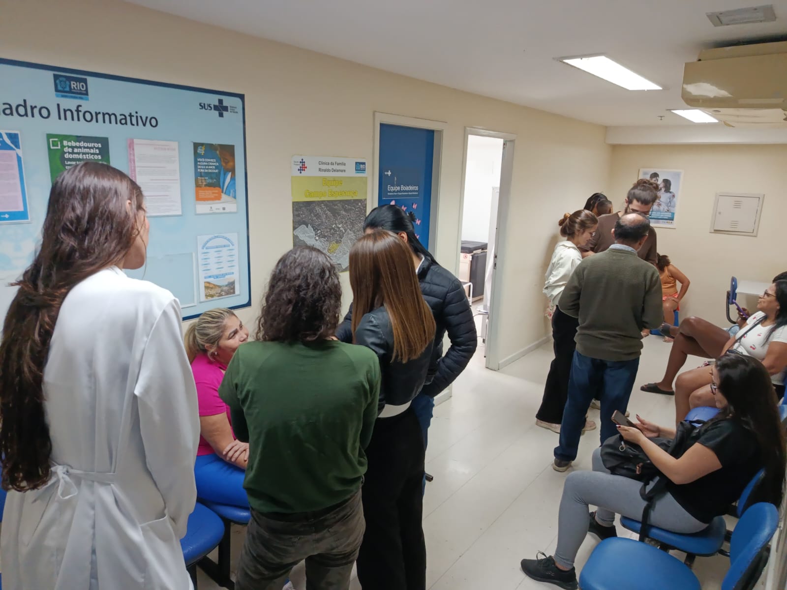 A utilização da sala de espera como espaço educativo também reforça a importância das ações de promoção da saúde no cotidiano das unidades. Nesses momentos, temas relevantes como prevenção de doenças, autocuidado e organização dos serviços podem ser abordados de forma acessível, fortalecendo o protagonismo dos usuários no cuidado com a própria saúde. Dentro desse contexto, na manhã do dia 21 de outubro de 2025, os acadêmicos de Medicina da Universidade Veiga de Almeida (UVA) realizaram uma ação educativa na sala de espera da Clínica da Família Rinaldo De Lamare, com o intuito de dialogar com os usuários sobre a importância do Cadastro Situacional da população atendida na unidade.