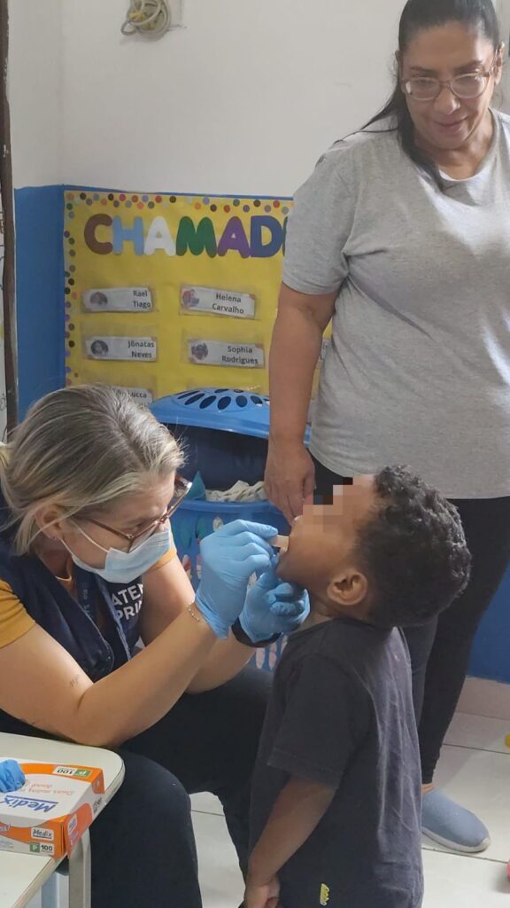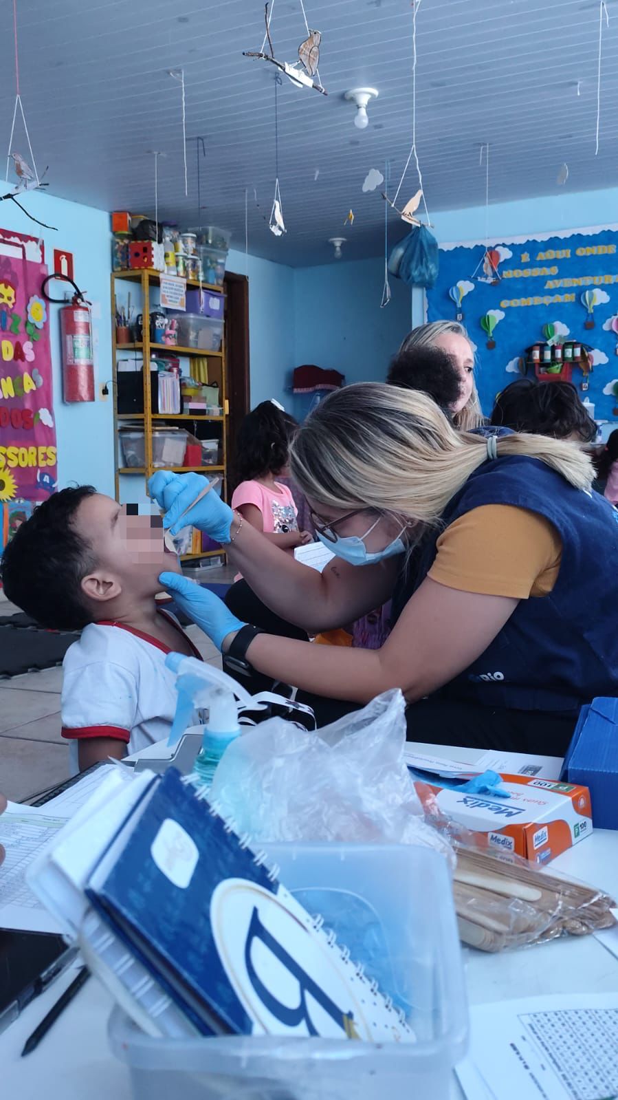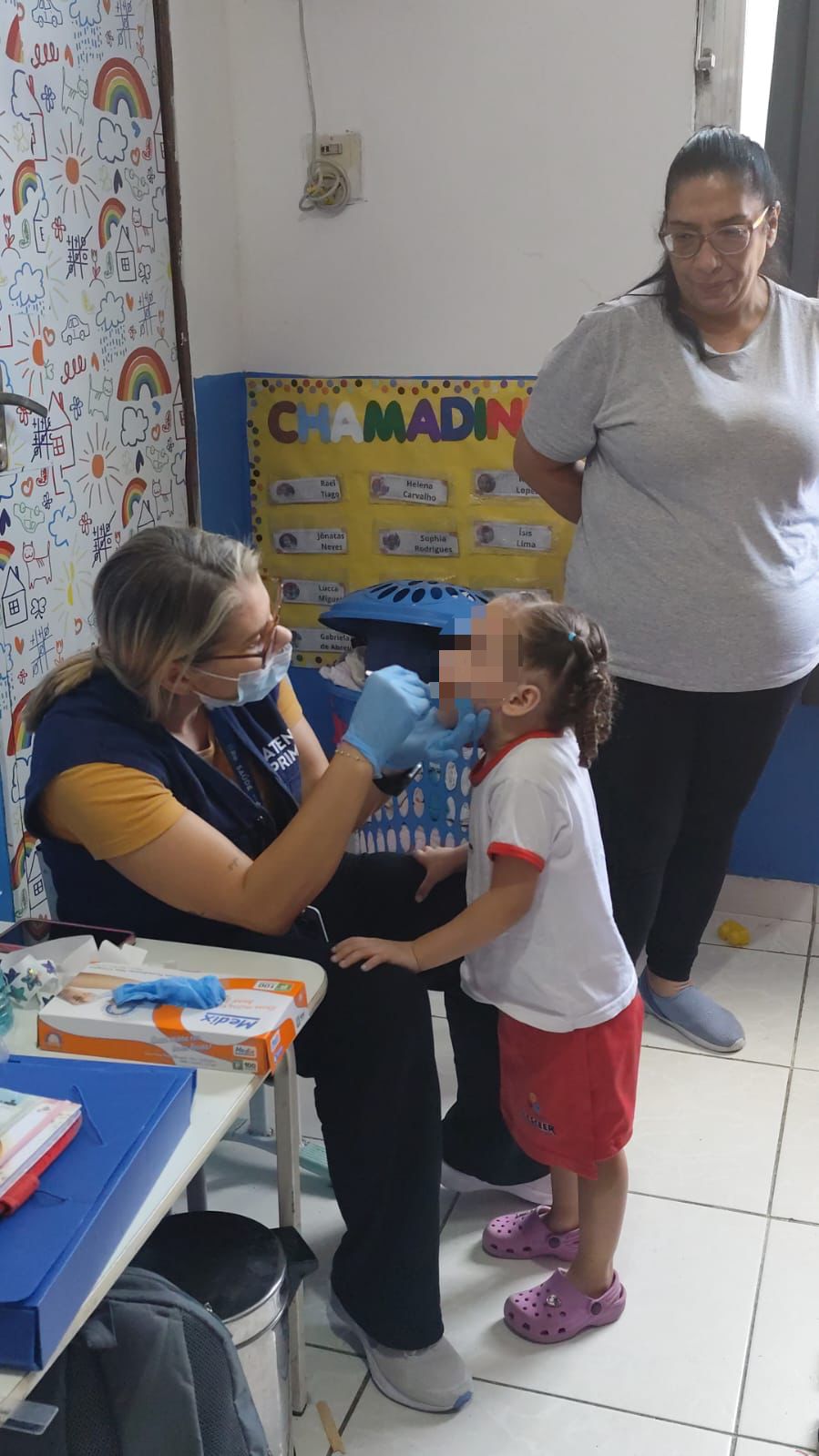 Na tarde do dia 24 de outubro de 2025, a Equipe Paz, vinculada à Clínica da Família Maria do Socorro Silva e Souza, realizou uma ação do Programa Saúde na Escola (PSE) na Creche NASCEER – Núcleo de Assistência Social, Cultural, Educacional e Ecológico da Rocinha. A atividade teve como objetivo promover a integração entre saúde e educação, fortalecendo práticas de prevenção e promoção da saúde junto às crianças e educadores da instituição.O Programa Saúde na Escola (PSE) é uma estratégia intersetorial dos Ministérios da Saúde (MS) e da Educação, que busca contribuir para a formação integral dos estudantes da rede pública por meio de ações que envolvem educação em saúde, prevenção de agravos e promoção de hábitos saudáveis desde a infância. As ações do programa visam não apenas o cuidado individual, mas também o fortalecimento do vínculo entre as unidades de saúde e as instituições de ensino, aproximando o Sistema Único de Saúde (SUS) da comunidade escolar.Diante disso, o público-alvo das atividades realizadas pela Equipe de Saúde da Família (eSF) Paz inclui crianças em idade escolar, professores e cuidadores, que desempenham papel fundamental na construção de um ambiente saudável e acolhedor. O trabalho conjunto entre saúde e educação permite identificar precocemente fatores de risco, orientar sobre alimentação saudável, higiene, vacinação e aspectos emocionais e comportamentais que impactam diretamente no desenvolvimento infantil.Dessa forma, ações como essa ganham ainda mais relevância diante dos determinantes sociais da saúde, como condições de moradia, renda, escolaridade e acesso a serviços básicos. A atuação do Programa Saúde na Escola (PSE) contribui para reduzir desigualdades e promover equidade, reforçando a importância da Atenção Primária à Saúde (APS) como porta de entrada e coordenadora do cuidado.