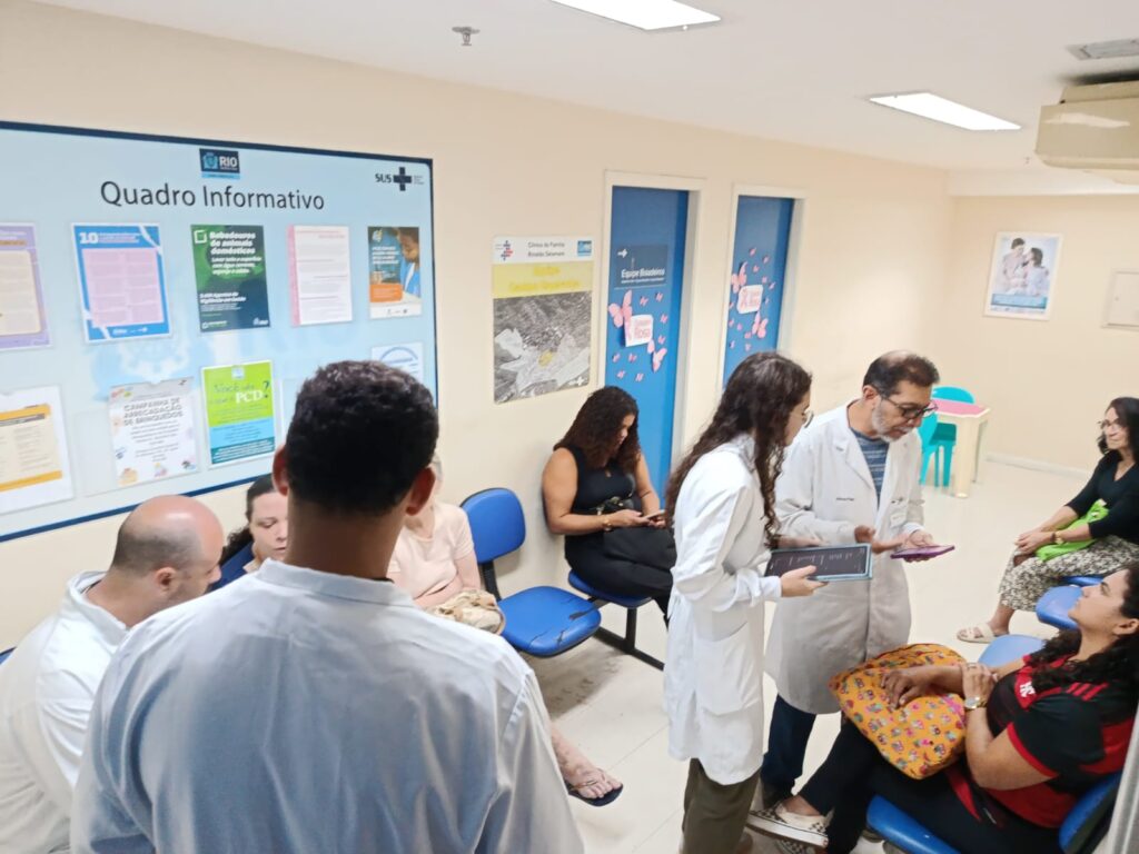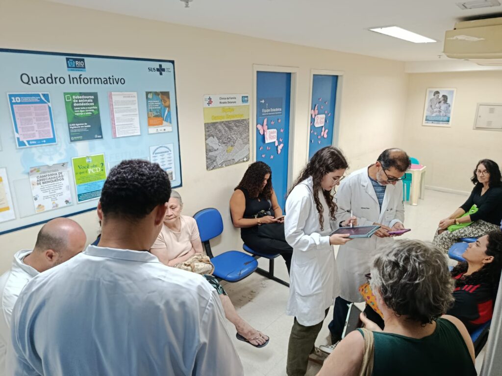 Na manhã do dia 27 de outubro de 2025, os acadêmicos de Medicina da Universidade Veiga de Almeida (UVA) desenvolveram uma importante atividade na sala de espera da Clínica da Família Rinaldo De Lamare, realizando um diagnóstico situacional com os usuários atendidos pela unidade. A ação teve como objetivo compreender melhor o perfil socioeconômico, demográfico e de saúde da população do território, fortalecendo o vínculo entre ensino, serviço e comunidade.
