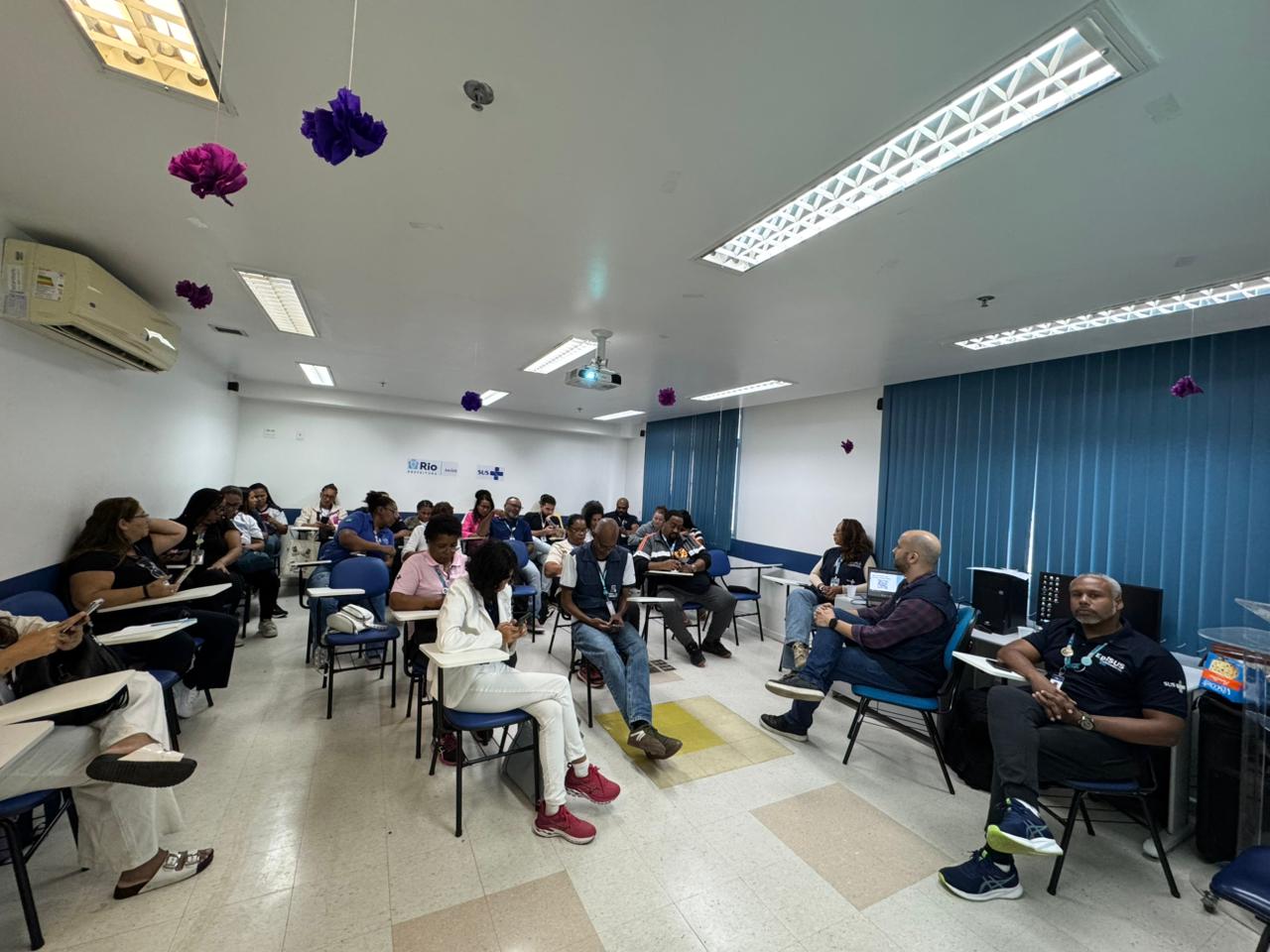 Com o objetivo de promover a equidade racial na saúde, fortalecendo ações e estratégias que combatam o racismo institucional e reduzam as desigualdades que afetam a população negra no acesso, na qualidade e nos resultados do cuidado em saúde. Na manhã do dia 30 de outubro de 2025, o auditório da OTICS Rio – Rocinha recebeu o primeiro encontro do Grupo de Trabalho (GT) Saúde da População Negra da AP 2.1, reunindo profissionais de diversas categorias da Atenção Primária à Saúde (APS), entre eles médicos, enfermeiros, técnicos de enfermagem e Agentes Comunitários de Saúde (ACS). A atividade que faz parte da linha de cuidados Saúde Integral da população Negra da Divisão de Ações e Promoção de Saúde (DAPS), foi conduzida por Rodrigo Nogueira (especialista em saúde), Raquel Vasconcellos (enfermeira) e Aldir Junior (enfermeiro), representantes da Coordenadoria Geral de Atenção Primária da Área de Planejamento 2.1 (CAP 2.1).Dessa forma, o encontro teve como objetivo fomentar o debate sobre as questões raciais e suas intersecções com a saúde pública, promovendo um espaço de diálogo, escuta e construção coletiva de estratégias voltadas ao enfrentamento das iniquidades raciais no acesso e na qualidade do cuidado prestado aos usuários do Sistema Único de Saúde (SUS).