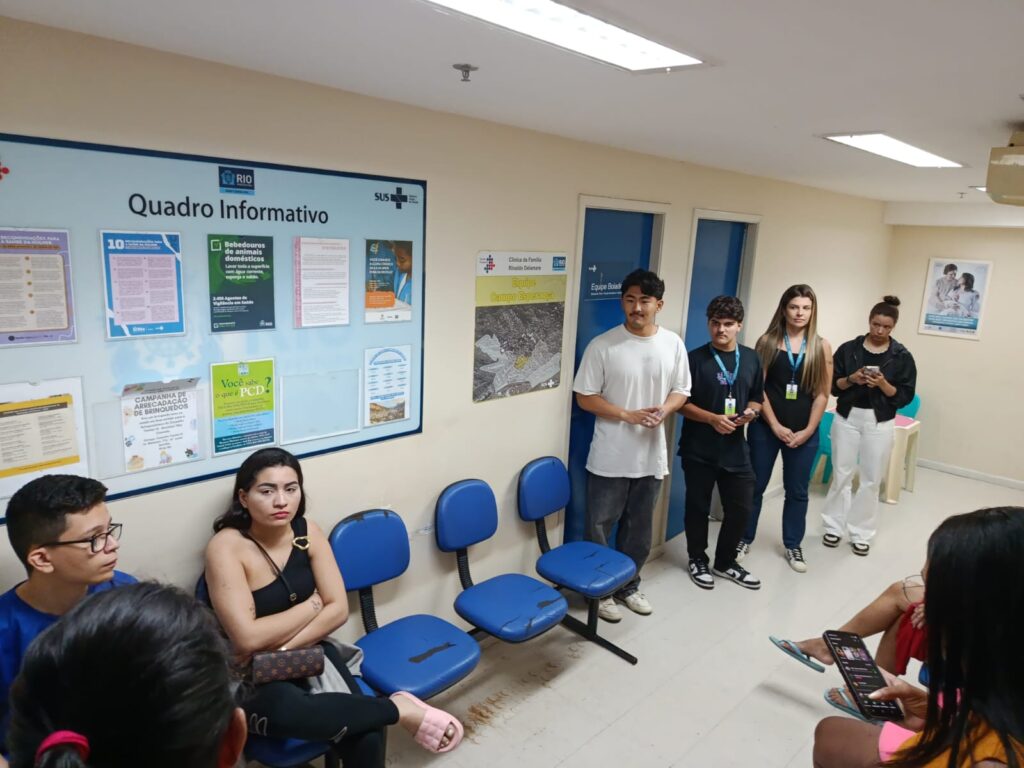 A sala de espera constitui um ambiente estratégico dentro dos serviços de Atenção Primária à Saúde (APS) por possibilitar o desenvolvimento de ações educativas e de promoção da saúde enquanto os usuários aguardam atendimento. Nesse contexto, na manhã do dia 5 de novembro de 2025, os acadêmicos de medicina da Universidade Veiga de Almeida (UVA) realizaram uma sala de espera sobre a saúde da gestante na Clínica da Família Rinaldo De Lamare. A atividade foi conduzida pelas preceptoras Marcelle Motta e Lívia Maria.Dessa forma, a utilização da sala de espera como cenário educativo pelos acadêmicos de medicina favorece o compartilhamento de informações essenciais relacionadas ao período gestacional, como a importância do acompanhamento pré-natal, da alimentação saudável, da prática de atividade física, da vacinação, dos sinais de risco na gravidez, do preparo para o parto e dos cuidados com o recém-nascido. Tais ações contribuem para promover a autonomia e a participação ativa das gestantes no processo de cuidado, em consonância com os princípios da humanização da assistência e da integralidade preconizados pelo Sistema Único de Saúde (SUS).Portanto, a sala de espera transcende sua função inicial de local de espera e se consolida como um espaço dinâmico de promoção da saúde, prevenção de agravos e fortalecimento do vínculo entre gestante, família e equipe de saúde. Além disso, essa experiência contribui para a formação dos acadêmicos de medicina, ao aproximá-los da prática educativa e dos princípios da Atenção Primária à Saúde (APS) e contribui para a melhoria dos indicadores de saúde materno-infantil.Saiba mais na unidade de saúde mais próxima.