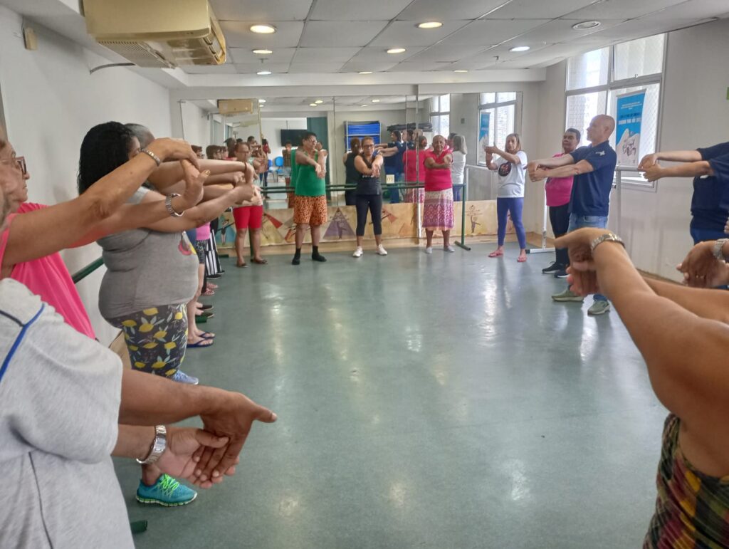 Além disso, reconhecendo que a promoção da saúde envolve não apenas aspectos biomédicos, mas também práticas que contribuem para o bem-estar físico e mental, a roda de conversa foi integrada a uma aula de alongamento. A prática corporal foi utilizada como estratégia para estimular o autocuidado, reduzir tensões musculares e favorecer a interação entre usuários e equipe multiprofissional. Essa articulação entre educação em saúde e atividade física reforça a perspectiva ampliada de cuidado adotada na Atenção Primária à Saúde (APS), que busca integrar diferentes dimensões da atenção no cotidiano dos serviços.