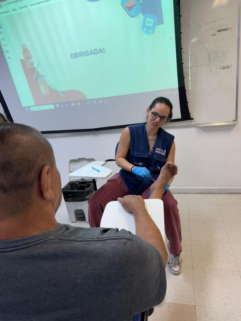 Com o objetivo de fortalecer o cuidado contínuo aos usuários e incentivar práticas de autocuidado. Proporcionando um espaço de troca de experiências, esclarecimento de dúvidas e atualização de informações sobre o controle do diabetes mellitus, reforçando a importância da adesão ao tratamento e de hábitos de vida saudáveis no dia a dia. Na tarde do dia 10 de dezembro de 2025, no auditório da OTICS – Rio Rocinha, recebeu a Equipe de Saúde da Família (eSF) Vila Verde, vinculada à Clínica da Família (CF) Rinaldo De Lamare, onde realizaram uma ação voltada aos participantes. O objetivo do grupo é auxiliar cada pessoa a compreender melhor sua condição, adotar hábitos saudáveis e prevenir complicações por meio de acompanhamento adequado.Diante disso, o acompanhamento em grupo permite uma abordagem interdisciplinar, envolvendo a equipe multidisciplinar como médicos, enfermeiros e agentes comunitários de saúde. Essa atuação integrada possibilita o compartilhamento de saberes, a construção coletiva do conhecimento e o fortalecimento da autonomia dos usuários no controle da doença.Além de promover educação em saúde, os grupos de diabetes mellitus contribuem para a prevenção de complicações e a redução de hospitalizações evitáveis. Os encontros regulares favorecem o monitoramento clínico, a identificação precoce de agravos. Dessa forma, funcionam como instrumentos de incentivo ao autocuidado e à melhoria da qualidade de vida.Portanto, os grupos de diabetes mellitus se constituem como uma estratégia essencial de cuidado longitudinal e integral, reafirmando os princípios da Atenção Primária à Saúde (APS). Sua continuidade contribui para a efetivação dos preceitos do Sistema Único de Saúde (SUS), promovendo não apenas o controle clínico da doença, mas também a educação, a autonomia e a humanização do cuidado.Saiba mais na unidade de saúde mais próxima.