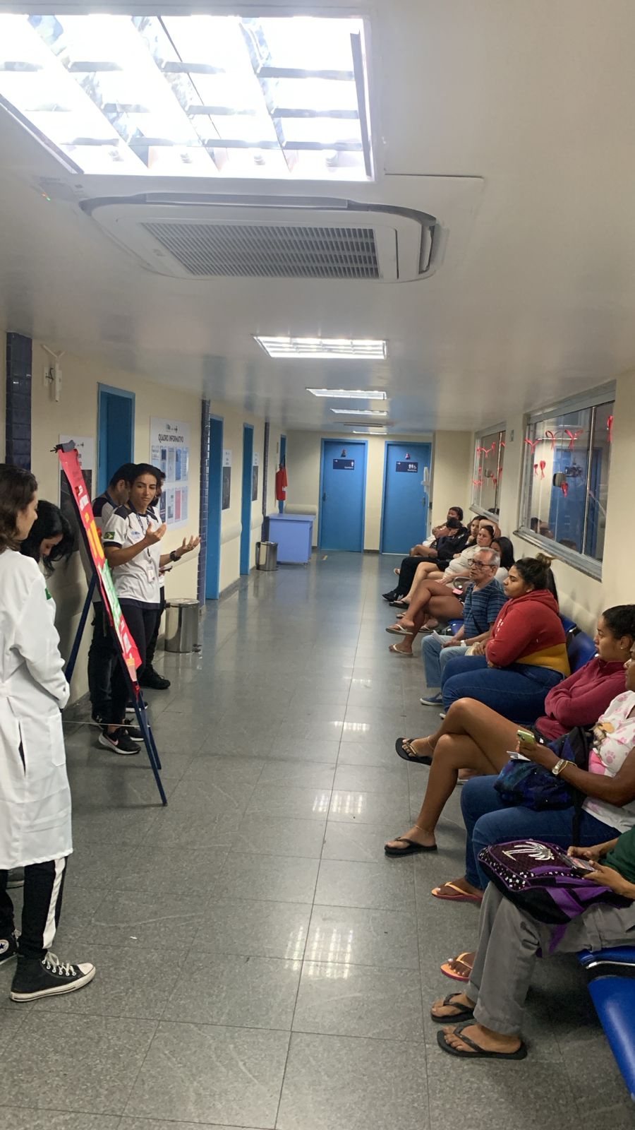 O Dezembro Vermelho é uma estratégia nacional de mobilização social voltada à prevenção, ao diagnóstico precoce e ao tratamento do HIV/aids e de outras Infecções Sexualmente Transmissíveis (ISTs). Nesse sentido, na manhã do dia 17 de dezembro de 2025, o Centro Municipal de Saúde (CMS) Dr. Albert Sabin realizou uma ação na sala de espera com abordagem alusiva à campanha. A atividade sensibilizou a população sobre a importância do uso de métodos de prevenção, da realização periódica de testes rápidos e do início oportuno do tratamento, contribuindo para a promoção da saúde e a redução da transmissão das Infecções Sexualmente Transmissíveis (ISTs).Dessa forma, na Atenção Primária à Saúde (APS), a sala de espera é um espaço estratégico para ações de educação em saúde, favorecendo o cuidado integral e ampliando o acesso à informação. Além disso, atividades educativas nesse ambiente ajudam a reduzir estigmas e preconceitos relacionados ao HIV/aids, promovendo uma compreensão mais ampla do processo saúde-doença.Portanto, quando utilizada de forma planejada e intencional, a sala de espera torna-se um dispositivo importante para a educação em saúde na Atenção Primária à Saúde (APS). No contexto do Dezembro Vermelho, ela contribui para a efetivação das políticas públicas de enfrentamento das Infecções Sexualmente Transmissíveis (ISTs), reafirmando o compromisso com a integralidade do cuidado, a equidade e a promoção da saúde da comunidade.Saiba mais na unidade de saúde mais próxima.