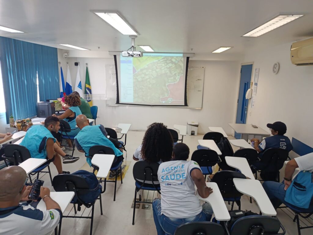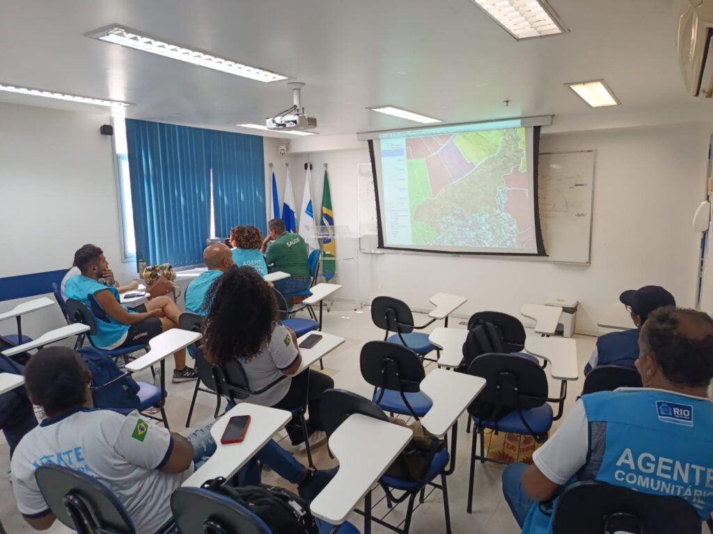 Nesta terça-feira, 17 de março de 2026, ocorreu um encontro no auditório da OTICS-Rio Rocinha com a participação dos Agentes Comunitários de Saúde (ACS) das equipes de Saúde da Família da Clínica da Família (CF) Maria do Socorro Silva e Souza. A atividade contou com a presença de Eduardo Queirolo, responsável pelo georreferenciamento da Divisão de Informação, Controle e Avaliação (DICA) da Coordenadoria Geral de Atenção Primária da Área Programática 2.1 (CAP-2.1).