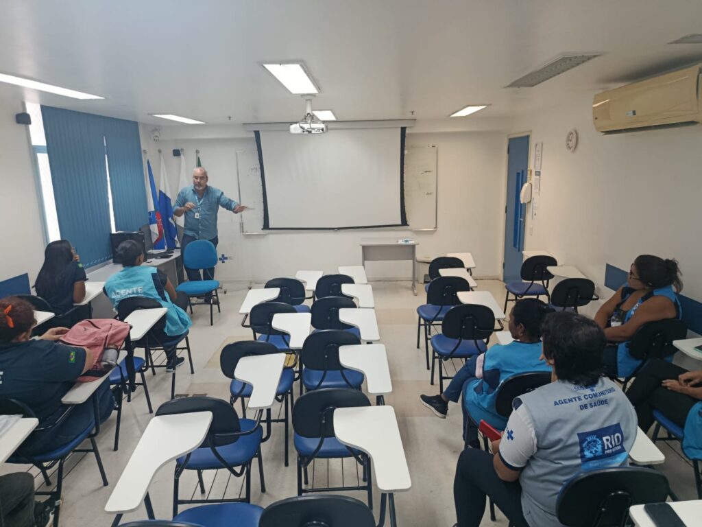 Nesta quinta-feira, 19 de março de 2026, foi realizada, no auditório da OTICS-Rio Rocinha, uma reunião com os Agentes Comunitários de Saúde (ACS) da Clínica da Família (CF) Rinaldo de Lamare, com o tema “Completude de Cadastro com Dinâmica”. O encontro foi conduzido pelo gerente da unidade, Jackson Gonçalves.