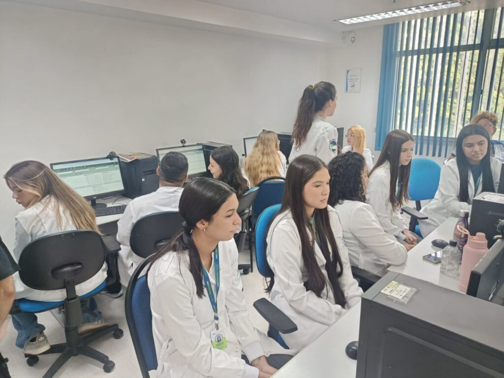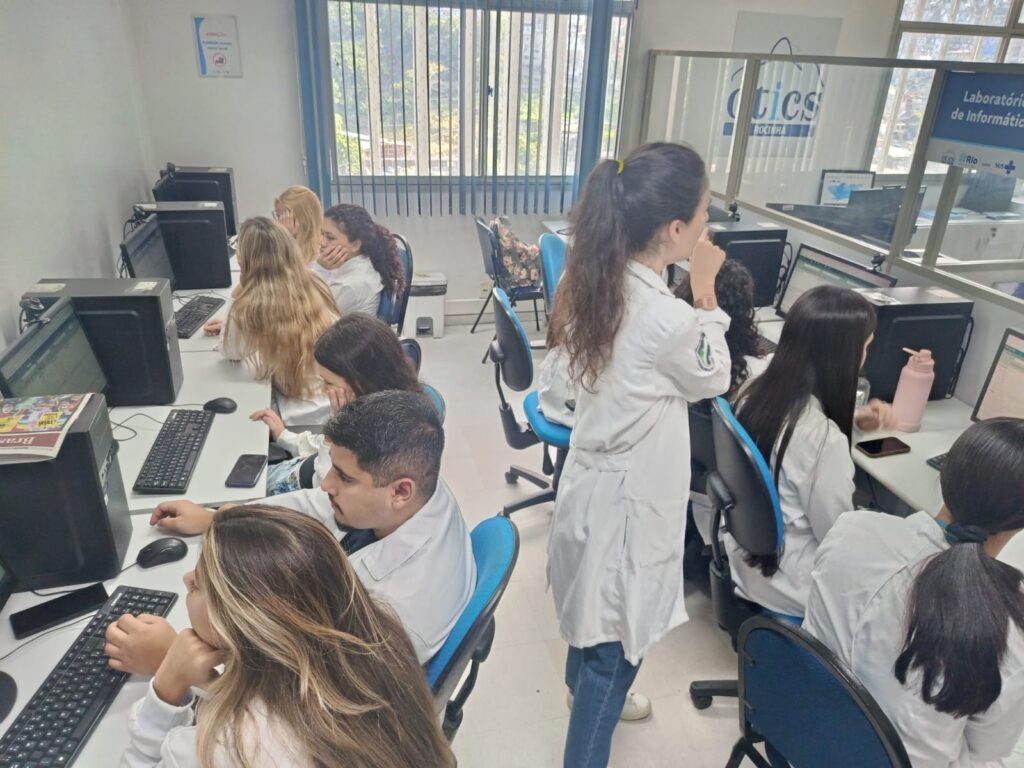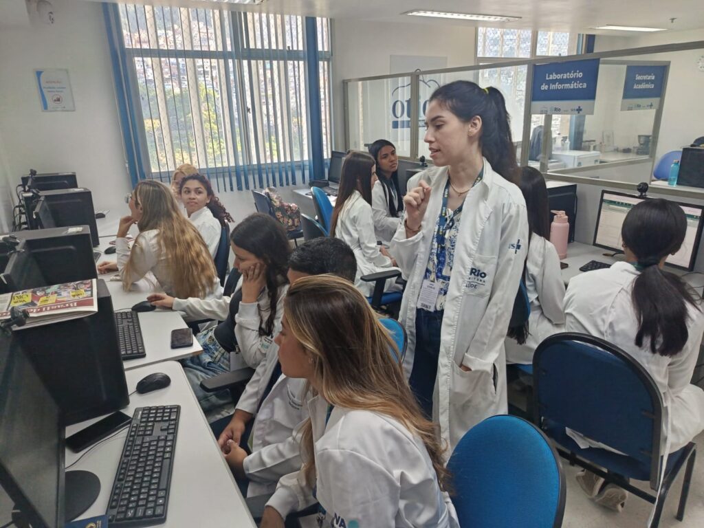 Nesta segunda-feira, 6 de abril de 2026, acadêmicos de medicina da Universidade Veiga de Almeida (UVA) participaram de uma atividade no laboratório de informática da OTICS – Rio Rocinha, onde acessaram o prontuário eletrônico da Clínica da Família (CF) Rinaldo de Lamare. A prática, essencial para a formação médica, permitiu contato com dados clínicos reais e compreensão do acompanhamento dos pacientes. A atividade foi conduzida pela preceptora Luísa Neves.