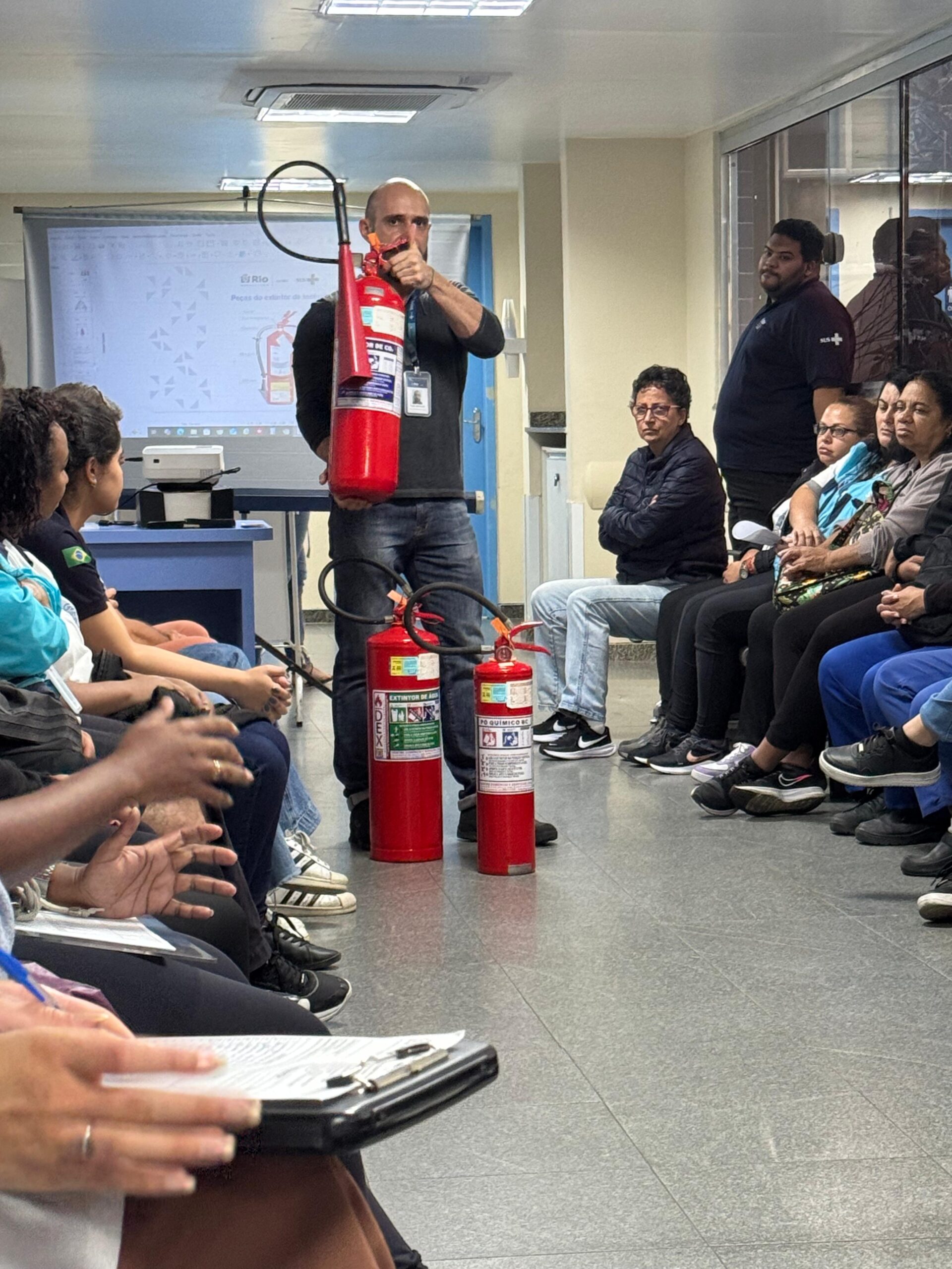 A segurança nas unidades de saúde, como as Clínicas da Família (CF) e os Centros Municipais de Saúde (CMS), deve ser compreendida como um pilar fundamental da gestão de riscos e da garantia da qualidade dos serviços oferecidos à população. Nesse sentido, na tarde do dia 1º de agosto de 2025, no Centro Municipal de Saúde (CMS) Dr. Albert Sabin aconteceu um treinamento voltado aos profissionais da unidade sobre o uso correto de extintores de incêndio. A atividade integrou uma estratégia preventiva essencial para a mitigação de riscos em situações de emergência, reforçando o compromisso com a segurança de trabalhadores, usuários e do próprio patrimônio público.De acordo com a Norma Regulamentadora nº 23 (NR-23) do Ministério do Trabalho e Emprego (MTE), todas as empresas e instituições são obrigadas a adotar medidas eficazes de prevenção e combate a incêndios. Entre essas medidas, destaca-se a obrigatoriedade de disponibilizar extintores em locais de fácil acesso, bem como garantir sua manutenção periódica e em conformidade com as especificações técnicas. Além disso, é essencial qualificar os colaboradores para o uso correto desses equipamentos. Os extintores de incêndio são classificados conforme o tipo de fogo que combatem — Classes A, B, C, D e K — sendo fundamental que os profissionais saibam identificar cada classe e empregar o agente extintor adequado, como água pressurizada, pó químico seco ou dióxido de carbono (CO₂), de forma segura e eficiente.Sendo assim, o treinamento também contribui para o fortalecimento de uma cultura organizacional voltada à prevenção, à segurança e ao cuidado coletivo. Profissionais bem treinados não apenas respondem com mais eficácia às situações de emergência, como também atuam de forma proativa na identificação de riscos e na disseminação de boas práticas entre os profissionais.
