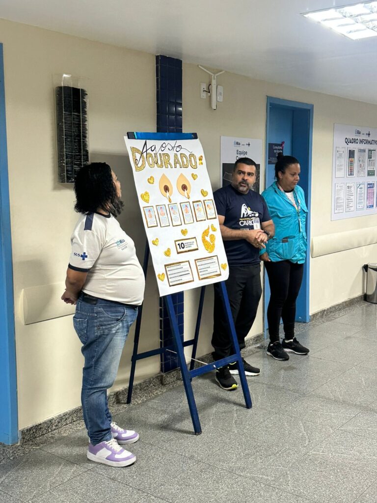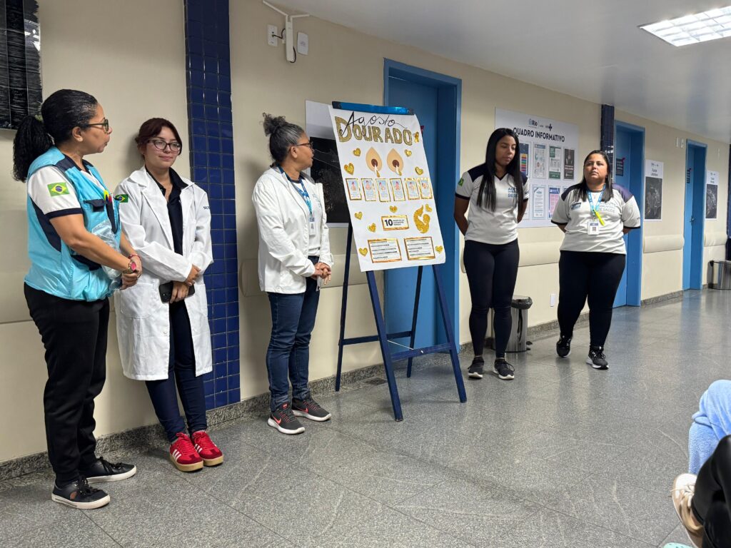 O Agosto Dourado é uma campanha nacional instituída no Brasil com o objetivo de reforçar a importância do aleitamento materno para a saúde e o desenvolvimento infantil. A cor dourada foi escolhida por representar o “padrão ouro” de qualidade do leite materno, considerado o alimento ideal para os recém-nascidos, especialmente nos primeiros seis meses de vida. Nesse contexto, na tarde do dia 5 de agosto de 2025, o Centro Municipal de Saúde (CMS) Dr. Albert Sabin promoveu uma Sala de Espera com foco na campanha Agosto Dourado. A atividade abordou temas essenciais como o incentivo à amamentação, o enfrentamento de mitos comuns e as principais dificuldades vivenciadas por muitas mulheres durante esse processo, proporcionando um espaço de acolhimento, informação e troca de experiências.Sendo assim, destaca-se o papel estratégico da Atenção Primária à Saúde (APS), especialmente por meio das Clínicas da Família (CF) e os Centros Municipais de Saúde (CMS), como espaço privilegiado para o desenvolvimento de ações educativas e de apoio ao aleitamento. Um ambiente de grande potencial dentro dessas unidades é a sala de espera, tradicionalmente utilizada apenas como espaço de espera passiva, mas que pode ser ressignificada como local de educação em saúde, escuta qualificada e mobilização social.Além disso, a participação de diferentes categorias profissionais, como enfermeiros, médicos, nutricionistas e agentes comunitários de saúde (ACS), é fundamental para que as ações na sala de espera sejam interdisciplinares, acolhedoras e culturalmente sensíveis. Tais iniciativas contribuem para o empoderamento das gestantes e puérperas, reforçando a importância do aleitamento materno como direito da criança e da mulher.Portanto, ao promover o aleitamento materno no contexto do Agosto Dourado, é imprescindível reconhecer a sala de espera como espaço potencial de cuidado e educação, ampliando o escopo das práticas de saúde e fortalecendo os vínculos entre os serviços de saúde e a comunidade.Saiba mais na unidade de saúde mais próxima.