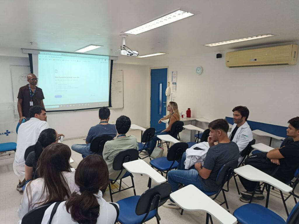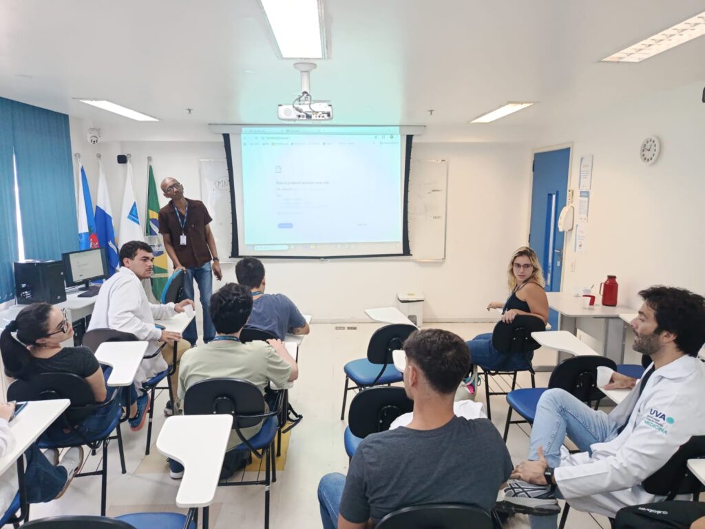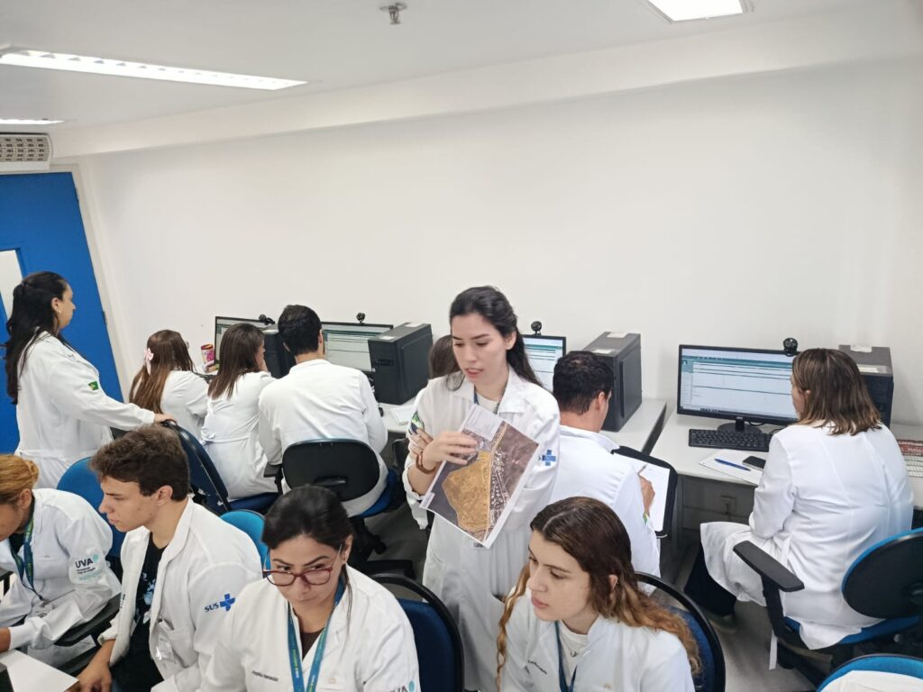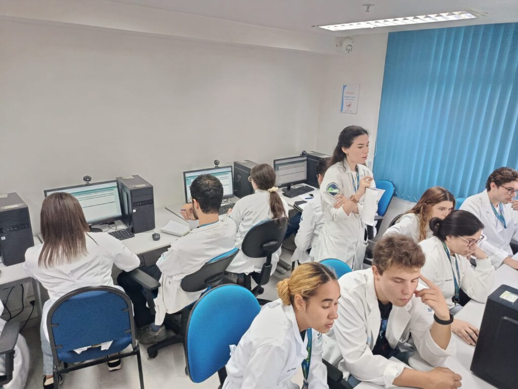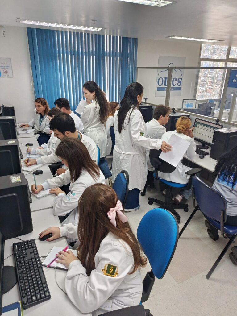 Nesta segunda-feira, 6 de abril de 2026, acadêmicos de medicina da Universidade Veiga de Almeida (UVA) participaram de uma atividade no laboratório de informática da OTICS – Rio Rocinha, onde acessaram o prontuário eletrônico da Clínica da Família (CF) Rinaldo de Lamare. A prática, essencial para a formação médica, permitiu contato com dados clínicos reais e compreensão do acompanhamento dos pacientes. A atividade foi conduzida pela preceptora Luísa Neves.