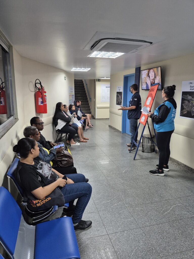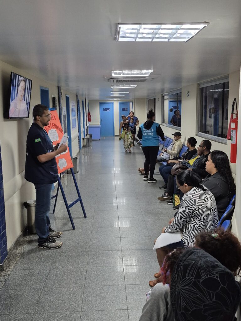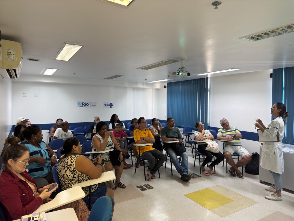 A Atenção Primária à Saúde (APS) constitui a principal porta de entrada do Sistema Único de Saúde (SUS) e tem como um de seus pilares a integralidade do cuidado. Nesse cenário, as Clínicas da Família (CF) e os Centros Municipais de Saúde (CMS) configuram-se como espaços privilegiados para o desenvolvimento de ações em saúde mental. Nesse sentido, na tarde do dia 18 de junho de 2025, foi realizado um encontro do Grupo de Cuidado Mental, promovido pela Clínica da Família (CF) Rinaldo De Lamare. A atividade foi coordenada pela equipe da eMulti e teve como objetivo discutir temas relevantes à saúde mental, promovendo um espaço de escuta qualificada, acolhimento e reflexão coletiva. Diante do crescimento dos casos de sofrimento psíquico nas comunidades, torna-se fundamental adotar abordagens que transcendam a prescrição medicamentosa, incorporando práticas de cuidado que considerem os determinantes sociais da saúde, o contexto de vida dos usuários e a promoção do bem-estar emocional.
