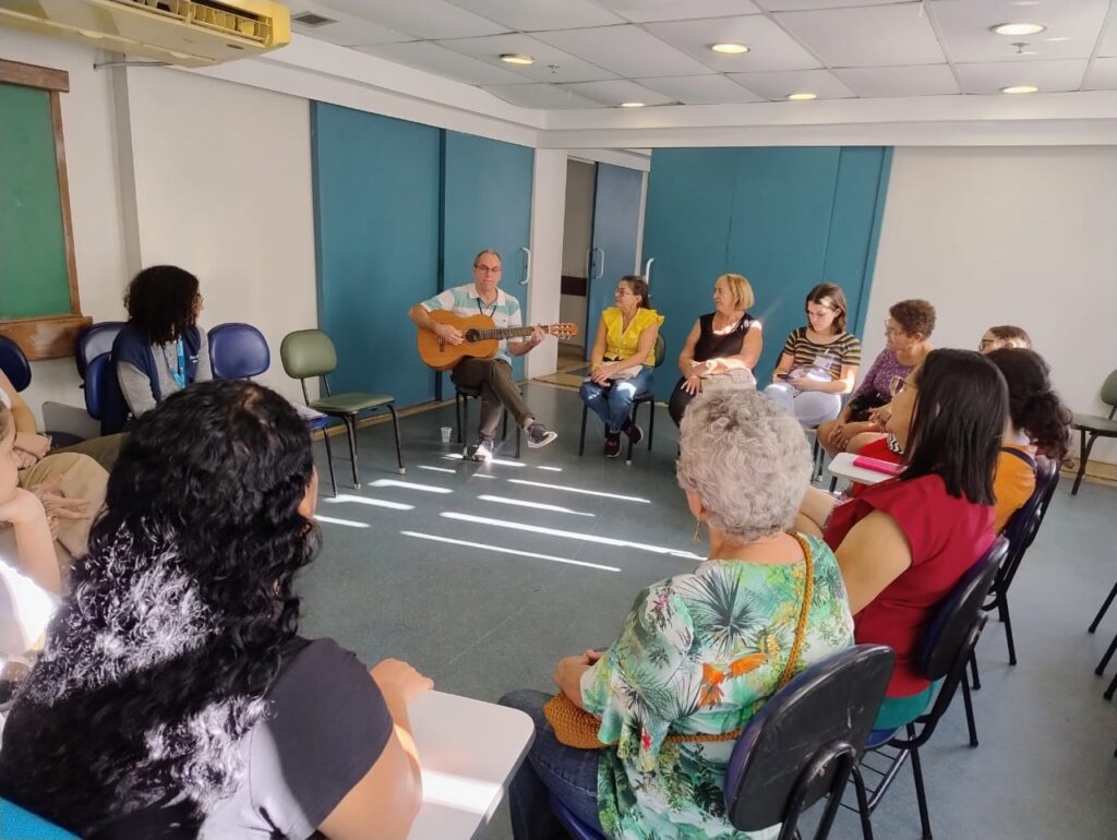 A Atenção Primária à Saúde (APS) constitui a principal porta de entrada do Sistema Único de Saúde (SUS) e tem como um de seus pilares a integralidade do cuidado. Nesse cenário, as Clínicas da Família (CF) e os Centros Municipais de Saúde (CMS) configuram-se como espaços privilegiados para o desenvolvimento de ações em saúde mental. Nesse sentido, na tarde do dia 18 de junho de 2025, foi realizado um encontro do Grupo de Cuidado Mental, promovido pela Clínica da Família (CF) Rinaldo De Lamare. A atividade foi coordenada pela equipe da eMulti e teve como objetivo discutir temas relevantes à saúde mental, promovendo um espaço de escuta qualificada, acolhimento e reflexão coletiva. Diante do crescimento dos casos de sofrimento psíquico nas comunidades, torna-se fundamental adotar abordagens que transcendam a prescrição medicamentosa, incorporando práticas de cuidado que considerem os determinantes sociais da saúde, o contexto de vida dos usuários e a promoção do bem-estar emocional.